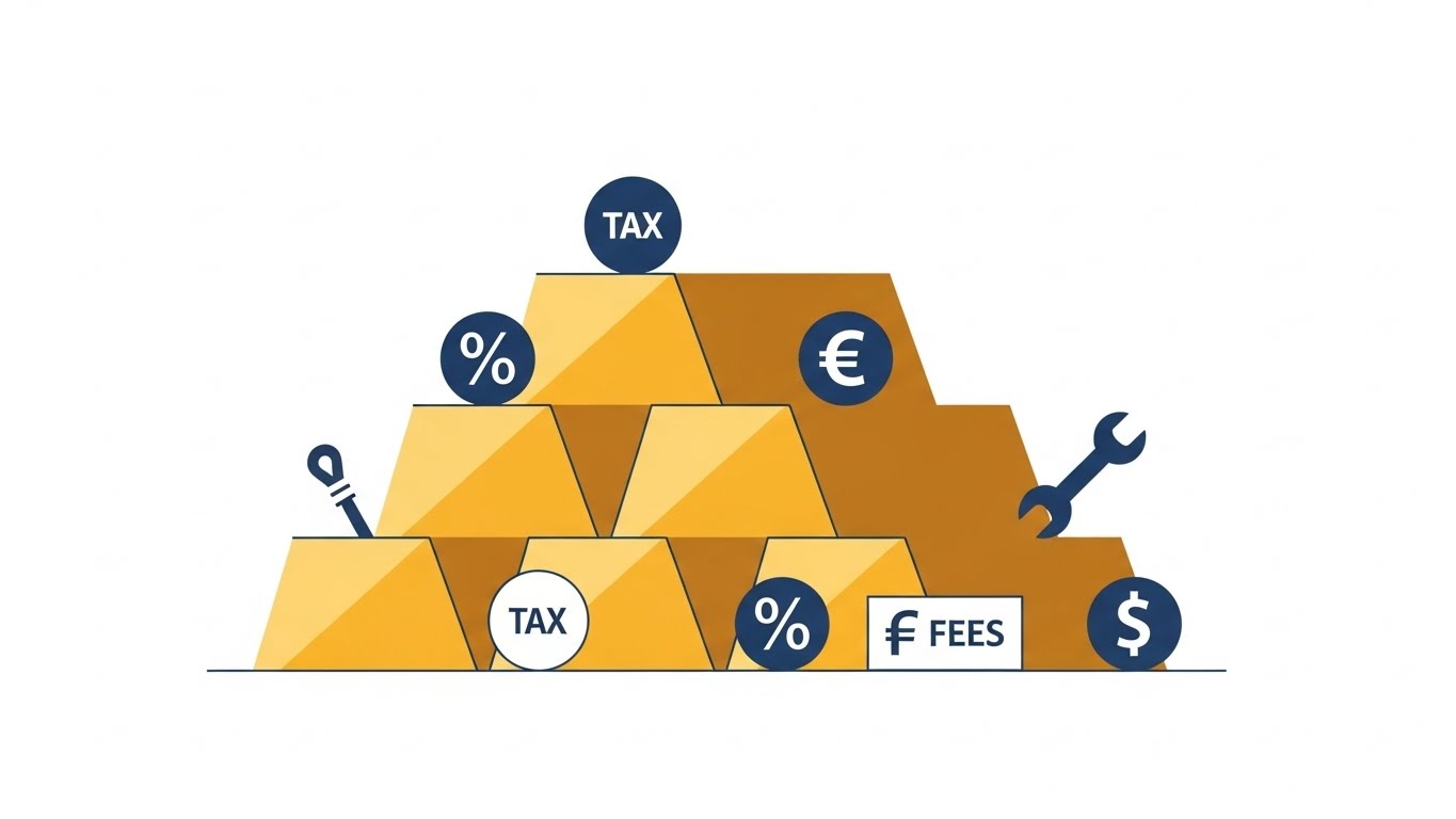 금 시세에 적용되는 수수료와 부가세는 거래 방식에 따라 크게 다릅니다. 실물 골드바는 초기 비용이 높지만 직접 보관이 가능하고, 골드뱅킹은 소액 투자에 유리하며, KRX 금시장은 세금 혜택이 가장 큽니다.