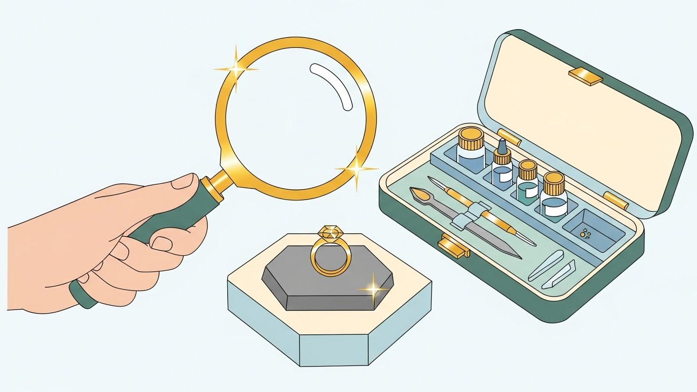 ✅ 일상적인 확인은 각인과 자석 테스트로 충분하고, 고가의 금 제품이나 매매 전에는 반드시 전문 감정을 받아야 합니다.