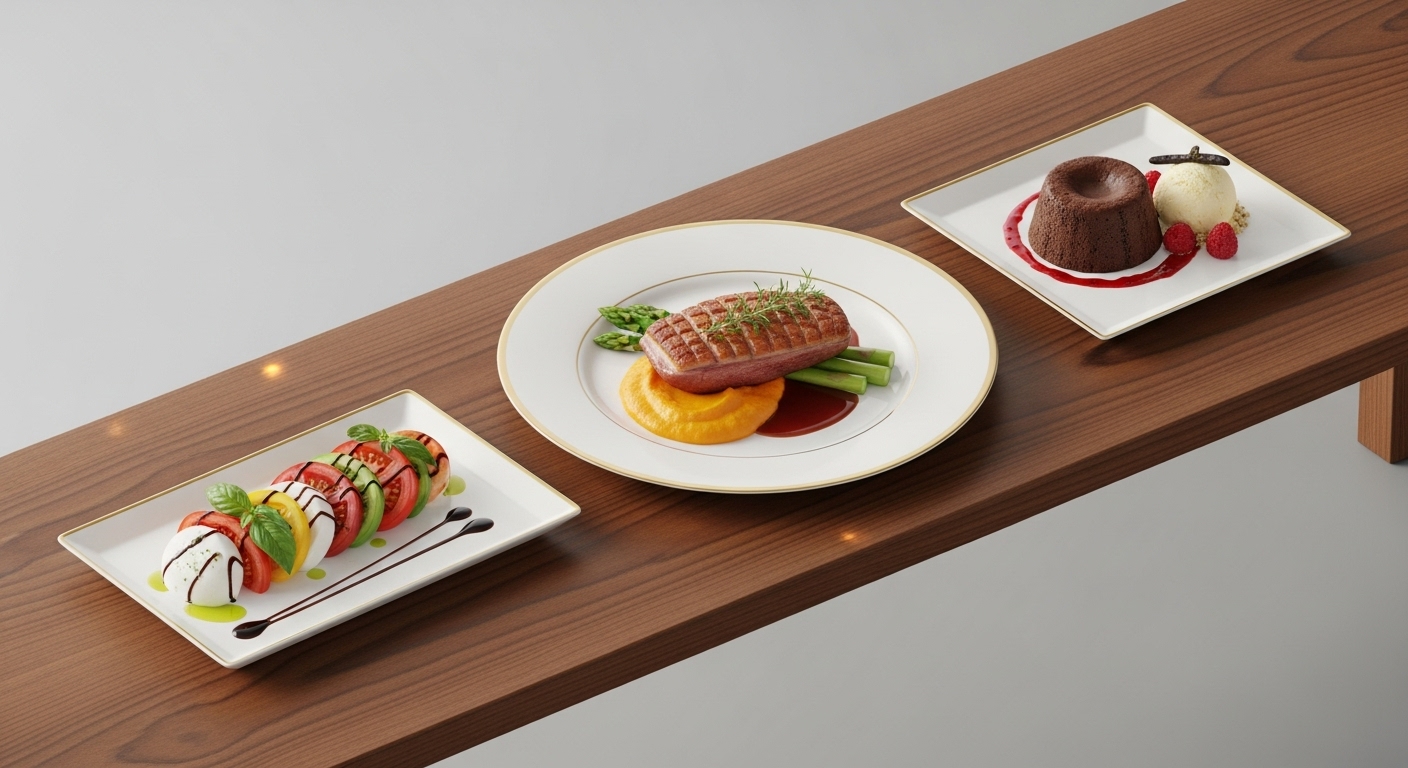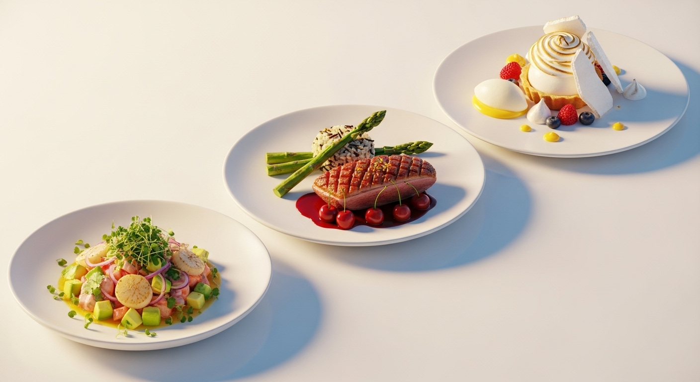 파인 다이닝의 코스 요리는 정해진 순서에 따라 제공됩니다.